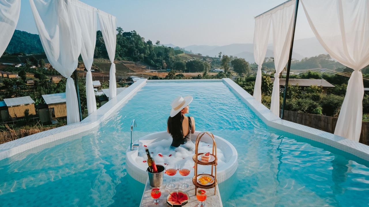 ที่พักพูวิลล่าสวนตัวกลางเขาอ่างแช่น้ำอุ่นกลางสระวิวภูเขาทะเลหมอก ที่จอดรถสวนตัว | Bed & Breakfast in Chiang Mai