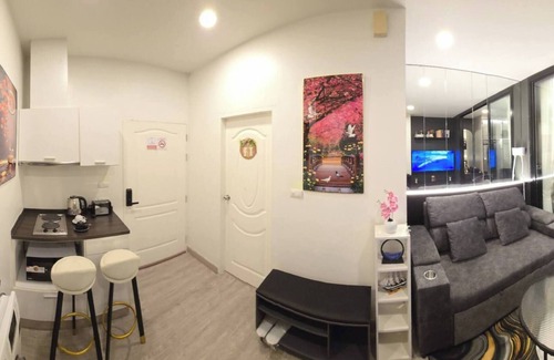Modern loft studio room type, balcony with city and partially river view, 5-10 mins walk to Iconsiam/Charoennakhon BTS Station (sky train gold line).