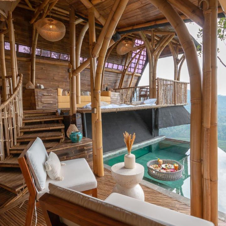 Cliffside Bamboo Treehouse with Heated Pool and View | Villa in Bungbungan
