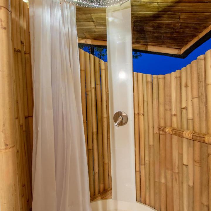 Providing a garden, Cliffside Bamboo Treehouse with Heated Pool and View offers accommodations in Bungbungan. This property offers access to a terrace, free private parking, and free Wifi. The villa provides a pool with sea views, hot tub, and a 24-hour front desk. The air-conditioned villa consists of 1 separate bedroom, 1 bathroom with bathrobes and slippers, and a seating area. A private entrance leads guests into the villa, where they can enjoy some wine or champagne and fruit. The property has an outdoor dining area. Guests at the villa can enjoy an à la carte breakfast, and breakfast in the room is also available. Guests can eat at the on-site romantic restaurant, which is open for dinner, lunch, brunch, and cocktails. Yoga is available at the property. With an outdoor fireplace and a picnic area, this villa offers plenty of opportunities to relax. Goa Gajah is 15 miles from Cliffside Bamboo Treehouse with Heated Pool and View, while Tegenungan Waterfall is 17 miles from the property. Ngurah Rai International Airport is 30 miles away, and the property offers a paid airport shuttle service.