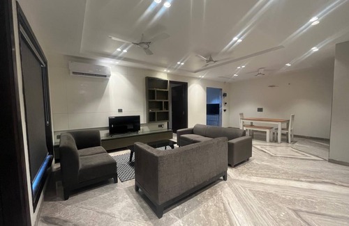 Your home away from home in Delhi with 3 bedrooms. This tremendous apartment offers a peaceful retreat for guests. With 2 queen beds and 1 king bed, you'll have plenty of space to unwind after a day of exploring. The apartment features AC, heating, and WiFi, ensuring a brilliant stay. The 4 bathrooms are equipped with showers for your convenience. Our place is equipped for both long or short stays to make your holiday one to remember. This stylish place to stay is perfect for group trips.