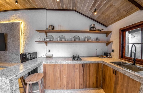 - Well equipped kitchen with breakfast bar and access to the terrace