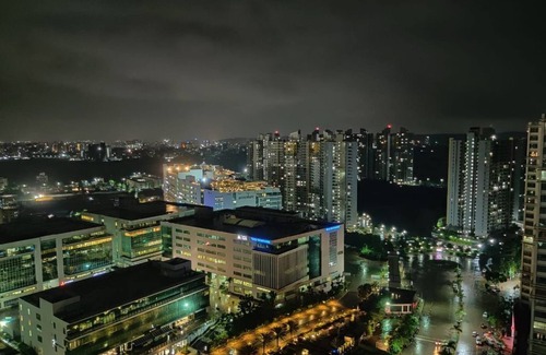 Our Apartment is located on the 22nd Floor with a magnificent view of the Skies looking down towards the Golf Club from every room. It is located right in front of Blue Ridge SEZ which has Many IT MNCs. Being on 22nd floor, you can definitely enjoy your time with the clouds. It is heavily guarded with Security. Only Working professionals and Married couples only.