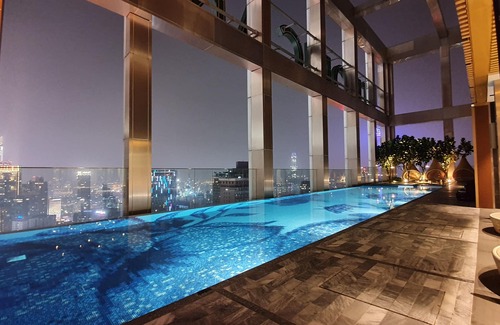 Tropicana Residence is an elegant and iconic column in the heart of Kuala Lumpur's city centre. You can't stay any closer to The fascinating KLCC twin towers located a stone throw from them within less than 3 minutes walking distance. With an international brand hotel on the lower floors and five-star service apartments on higher floors. a preferred choice for luxury accommodation in the vicinity of KLCC and as it is known as the Citys Commercial, Shopping & Entertainment Hub. The best part is the rooftop garden comes with stunning city views which include both Petronas Twin Towers & KL Tower. It's a perfect spot for those who prefer to enjoy your stay within the walking distance to the Petronas Twin Towers.