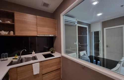 Besides its well-equipped kitchen, it includes two working spaces, swimming pools, gym and connected to the BTS Green Line and Yellow Line add to the convenience of your stay.